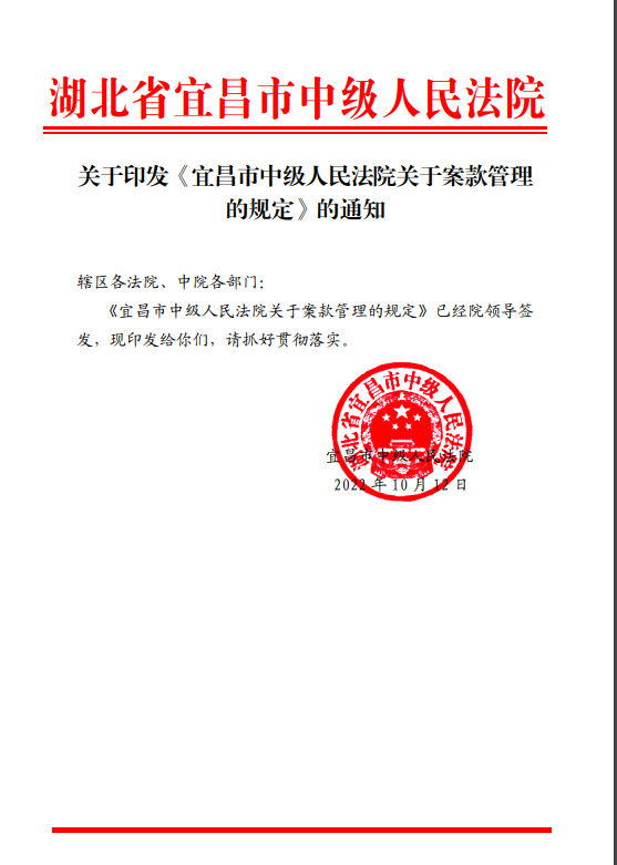 关于印发《宜昌市中级人民法院关于案款管理的规定》的通知