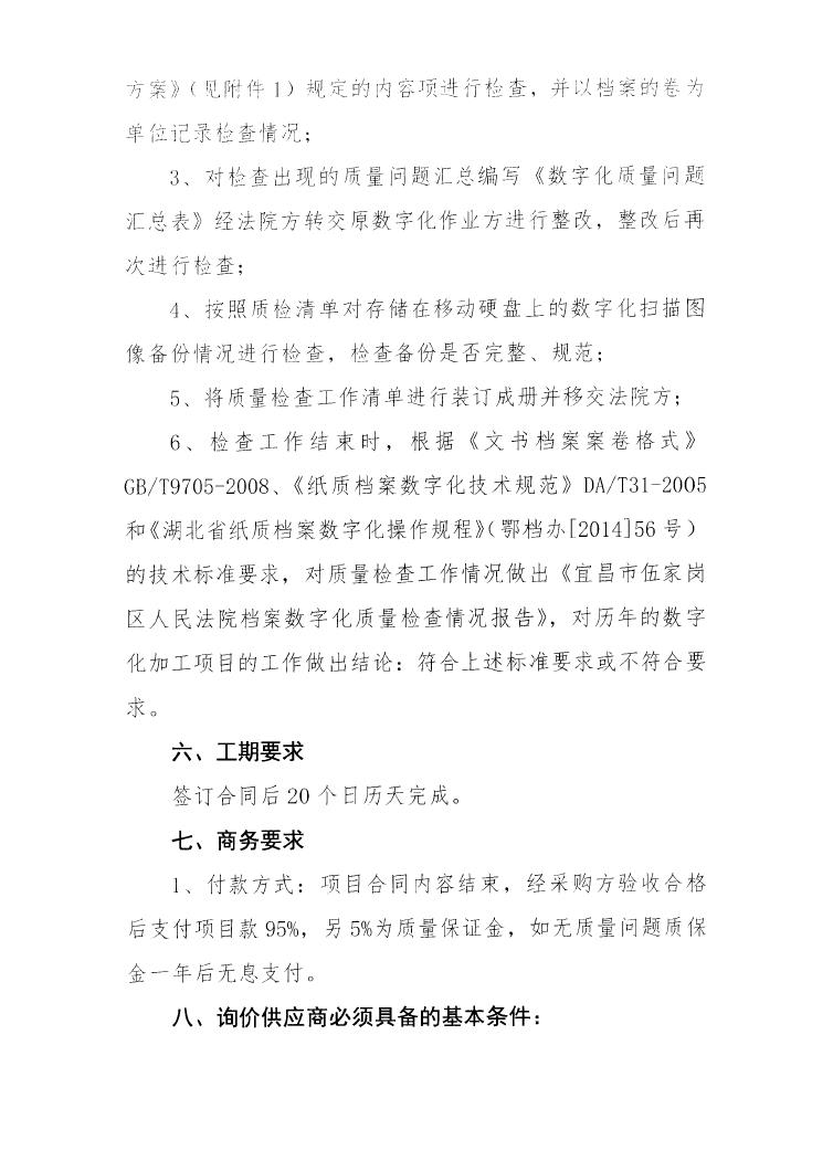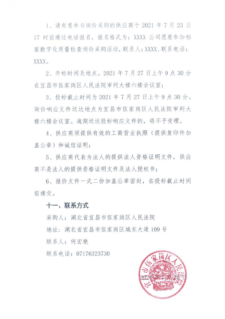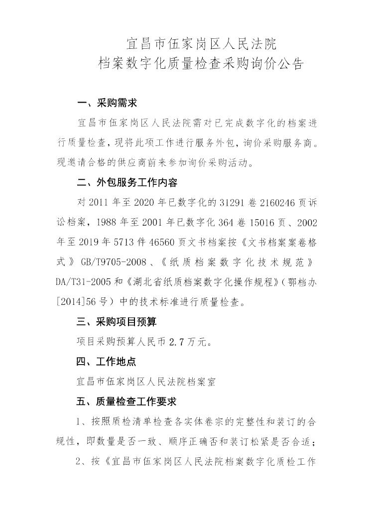 宜昌市伍家岗区人民法院档案数字化质量检查采购询价公告