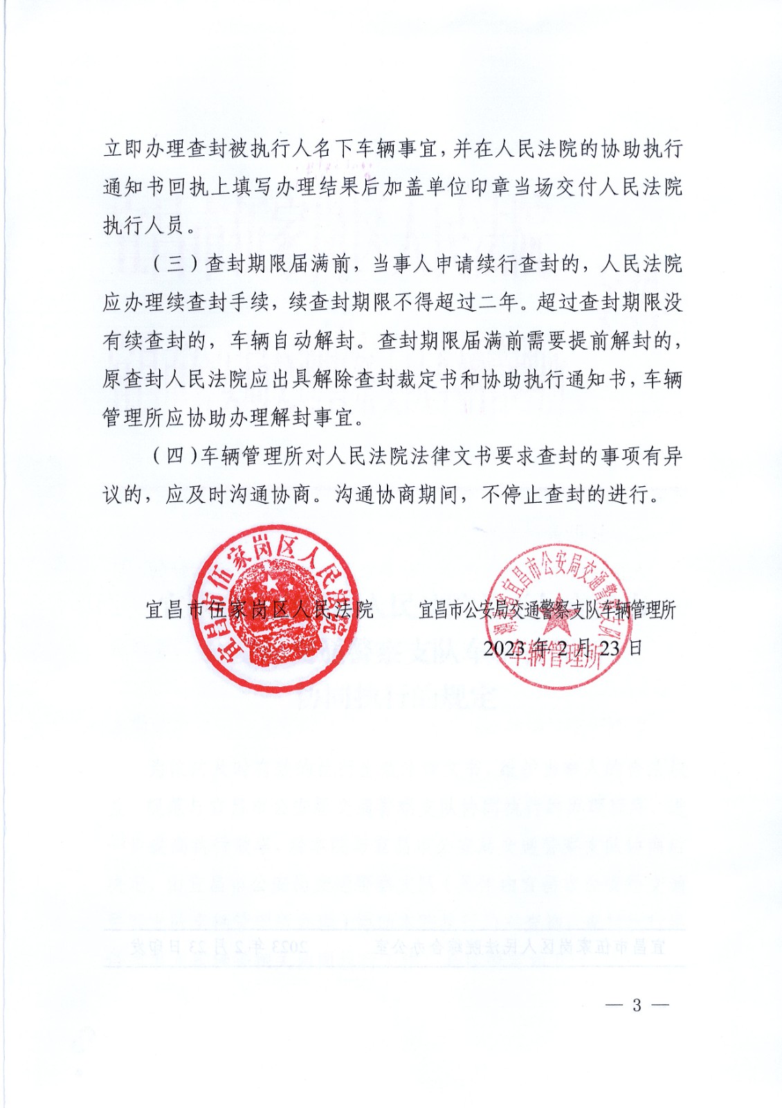 宜昌市伍家岗区人民法院关于与宜昌市公安局交通警察支队车辆管理所协同执行的规定