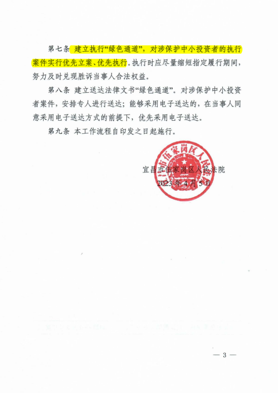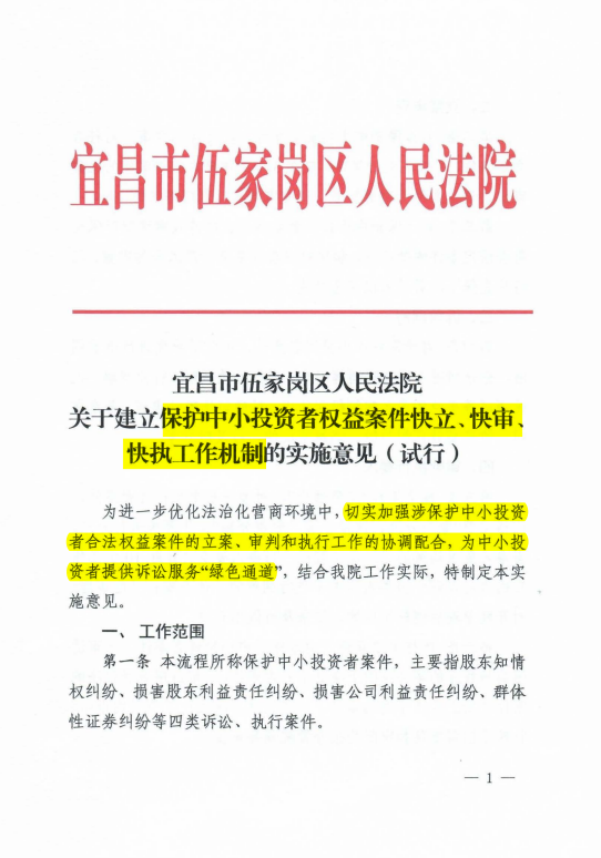 宜昌市伍家岗区人民法院关于建立保护中小投资者权益案件快立、快审、快执工作机制的实施意见(试行)